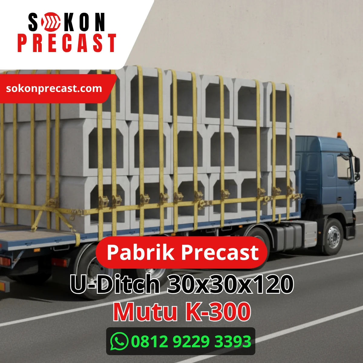 Sokon Precast melayani pengiriman U-Ditch 30x30x120 Mutu K-300 ke berbagai wilayah di Jabodetabek dan sekitarnya. Dengan dukungan armada truk crane dan colt diesel, proses pengiriman dilakukan cepat, aman, dan sesuai jadwal proyek.